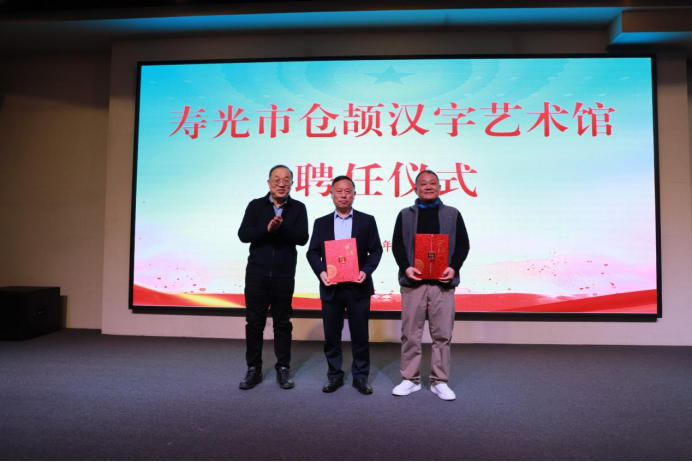 仓颉汉字艺术馆聘任仪式暨基层文化建设指导员书法大讲堂同步举行,寿光市委常委、宣传部部长袁义林出席活动并现场为文艺界名家颁发聘书。