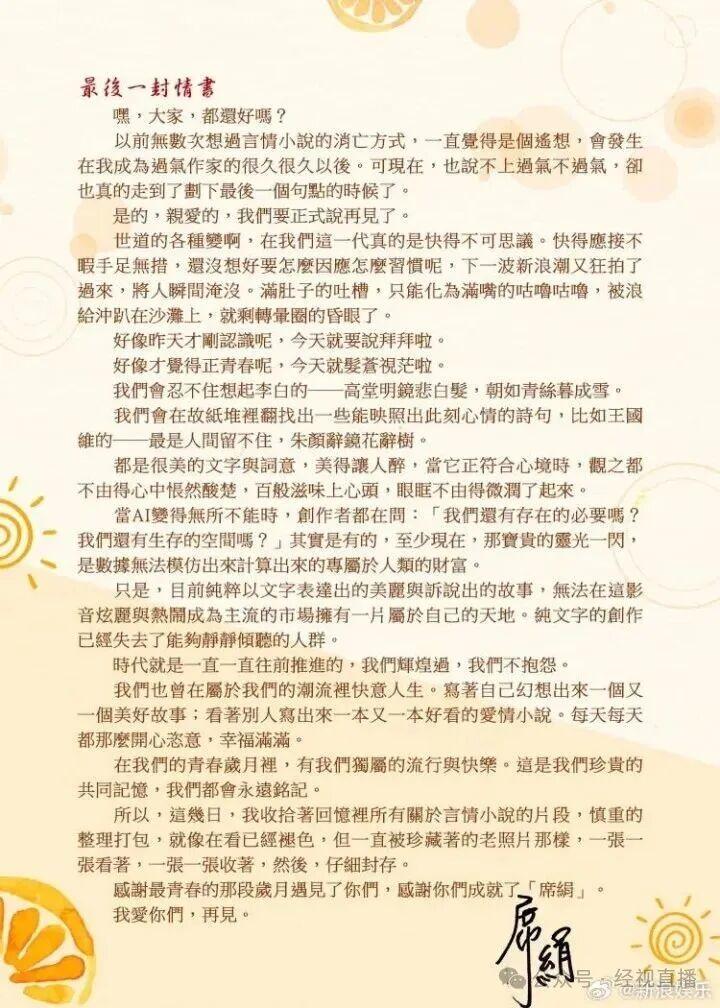 知名女作家突然宣布封笔!她的作品是一代人的青春记忆