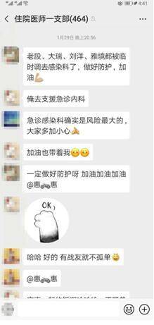 面对疫情,我们从不是单打独斗,带教老师们也给予了我们无私的关心与帮助。自从到了发热门诊,景芳邈和窦双在群里给我们加油打气,王令舒师姐还有杨惠敏都在急诊科,就在我们楼上,心里暖洋洋的,不觉得孤单。并且在发热门诊,总是时不时有热心人士给我们寄来外卖和零食,都让我们十分暖心,感到有一个强大的集体在支持着我们。