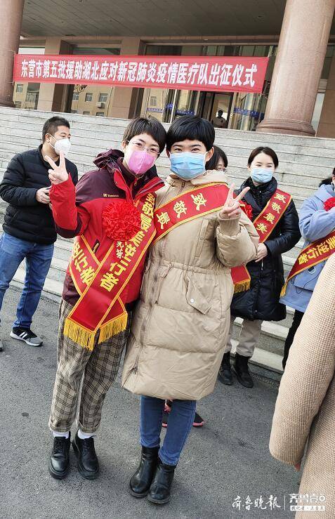 来自东营市第五人民医院的刘丛蕾和来自东营市人民医院的赵青青,两人是高中和大学同学,因为性格相投,上学时一直是亲密无间的好朋友,2010年大学毕业后,两人又同在滨州医学院附属医院工作了两年。分开后的8年间,两人因为工作、距离、家庭等种种原因就没再见过面,联系也越来越少。疫情出现后,两人不约而同地在第一时间报名申请赴湖北驰援,等到名单公布那一刻,这两位老朋友才发现原来彼此从前的那份默契并没有随时间而消散。