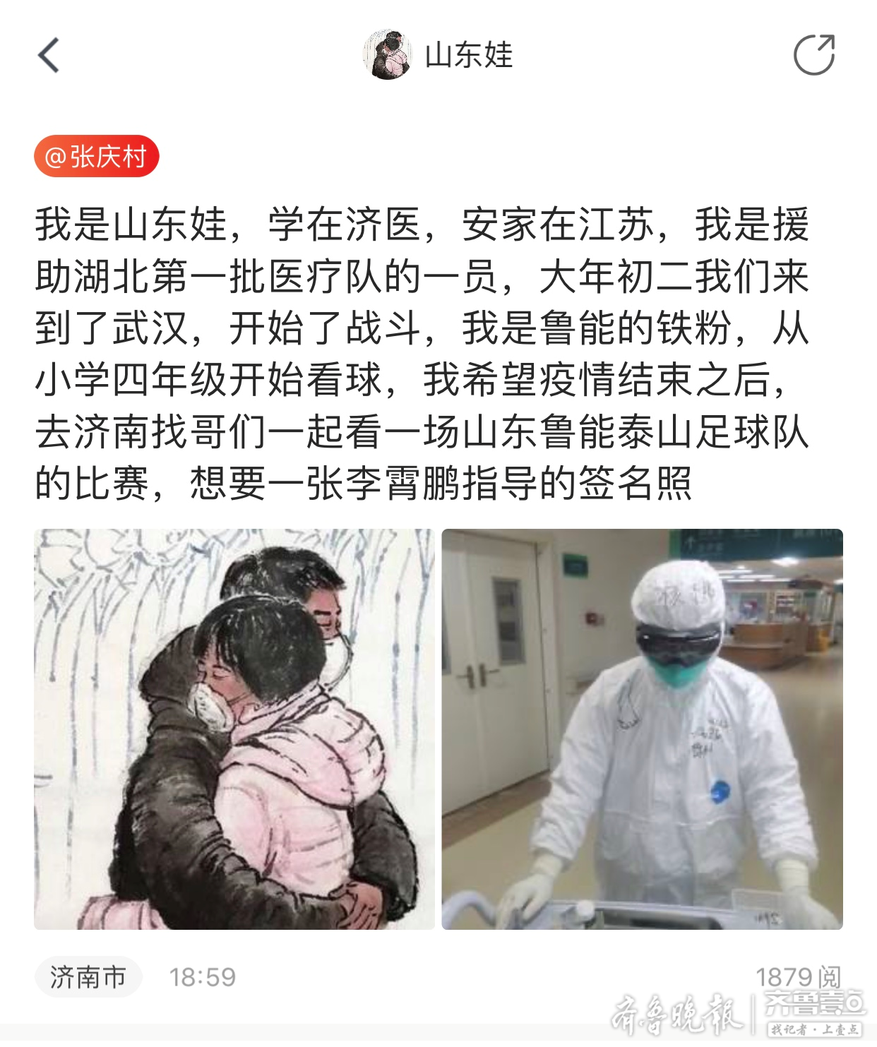 如你所愿|山东娃驰援武汉!他的心愿是有张李霄鹏的签名照