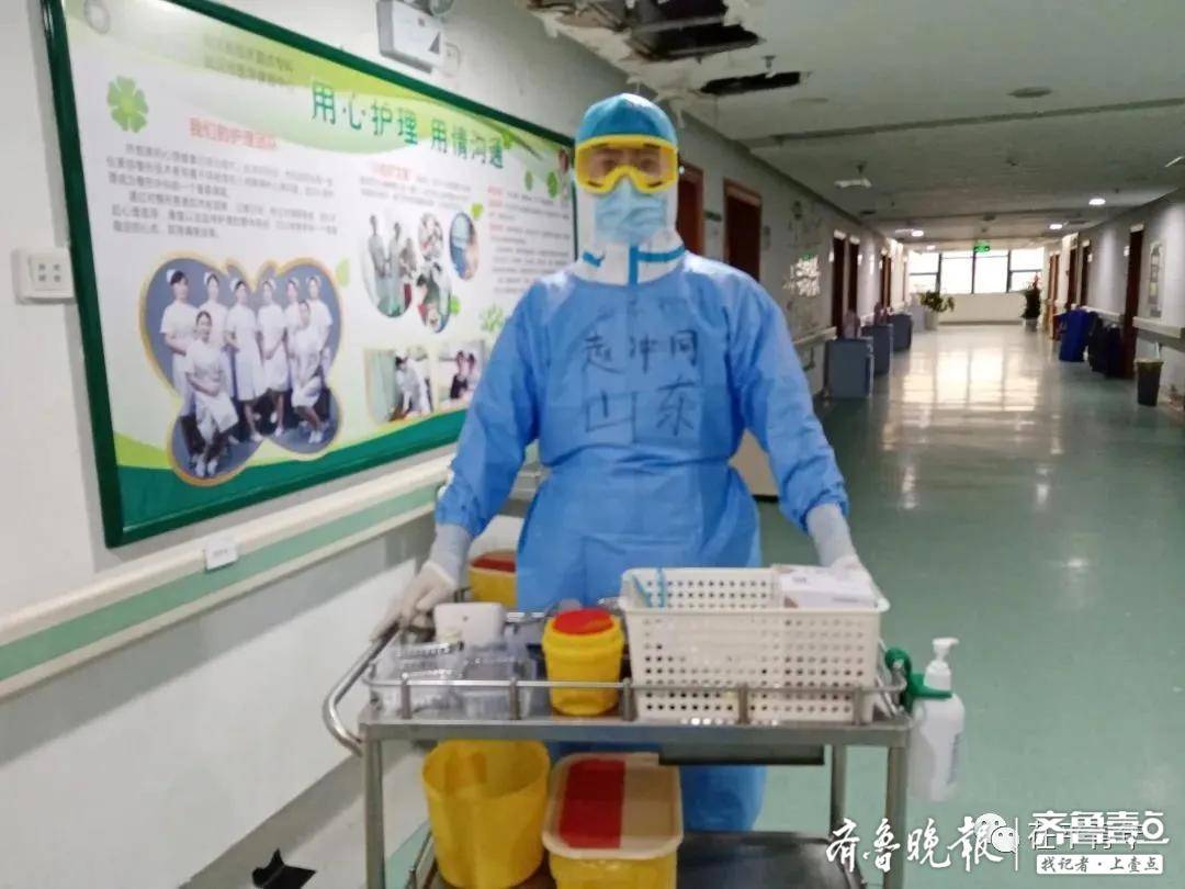 赵冲同是在2月20日,作为山东省第十二批援助湖北医疗队奔赴武汉的。他目前在武汉大学第三医院首义院区七楼一病区。赵冲同是一名90后,家里的孩子刚满4个月。