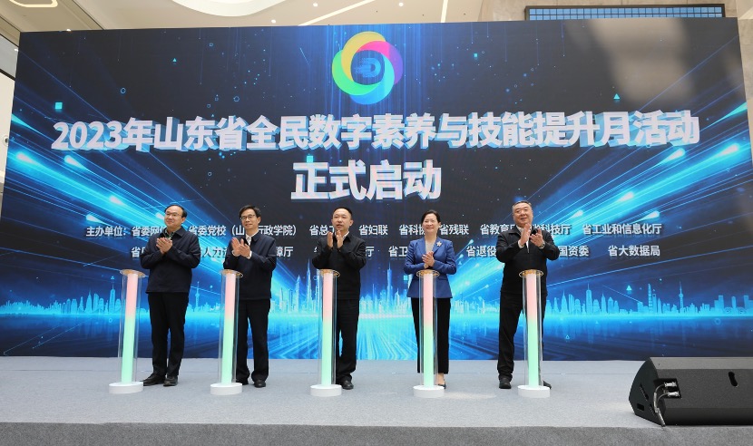 与会领导启动2023年山东省全民数字素养与技能提升月活动。