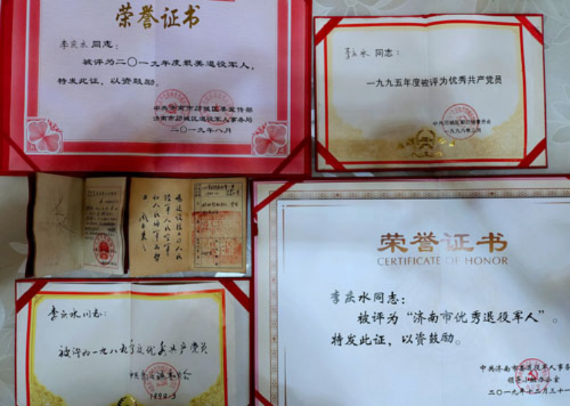 “最美退役军人”“优秀共产党员”……李庆水老人获得了数不清的荣誉。他曾说:我们要始终不忘共产党员的使命,随时听党话,跟党走,时刻学习党的先进理论,为群众谋福利。而他用了一生的时间来践行。