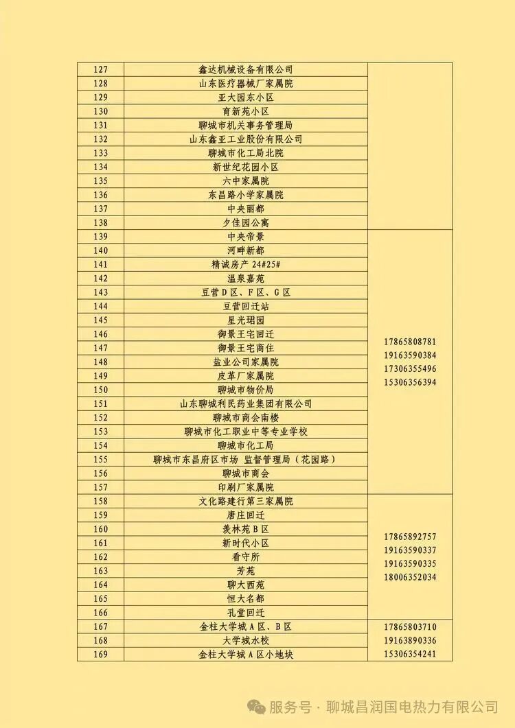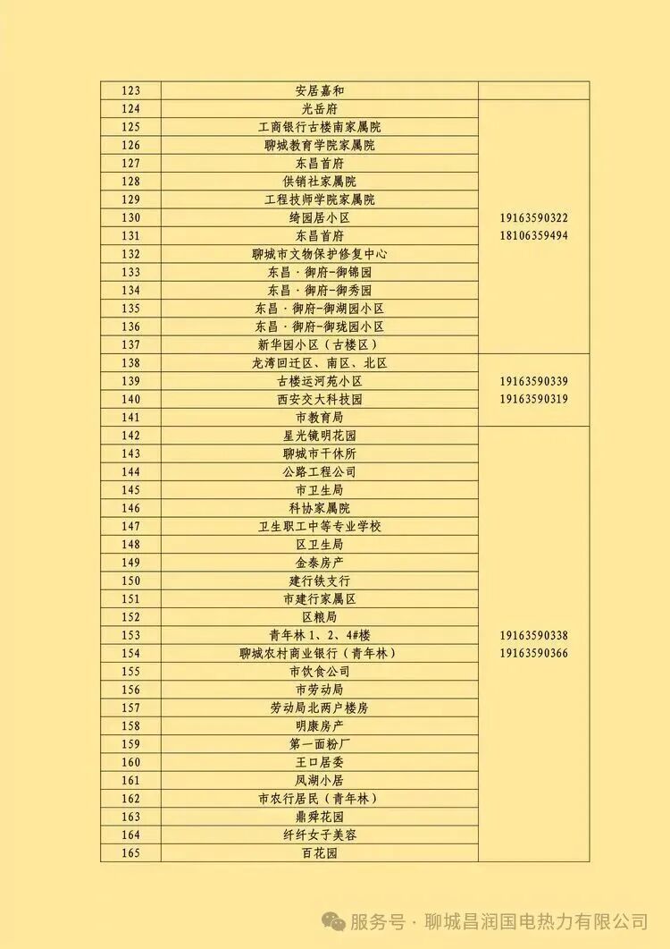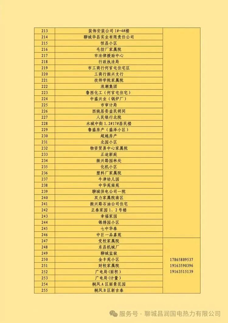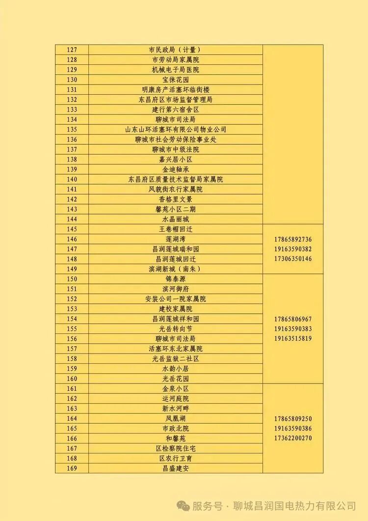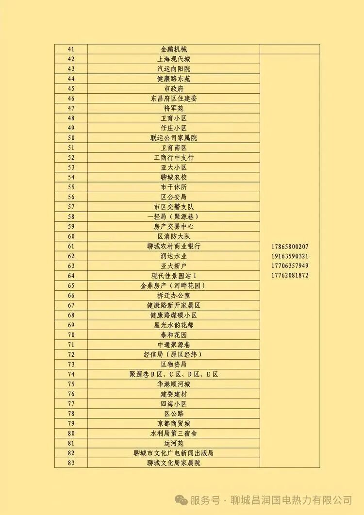 齐鲁晚报·齐鲁壹点 谢晓丽 22日,聊城昌润国电热力有限公司发布关于公布2025-2026年采暖季网格人员电话的通知,为切实做好2025-2026年采暖季供热服务工作,畅通用户供热诉求渠道,现将供热小区(单位)网格人员服务电话予以公布,广大热用户如有供热问题,均可拨打网格人员服务电话,将及时为您进行处理。 附件:2025-2026年采暖季小区(单位)网格人员电话