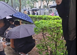 视频画面显示,雨天里,多名学生撑着伞在户外徘徊,还有学生搬来凳子直接坐在室外。发帖学生无奈发问:“外面下着雨,我们该何去何从?”