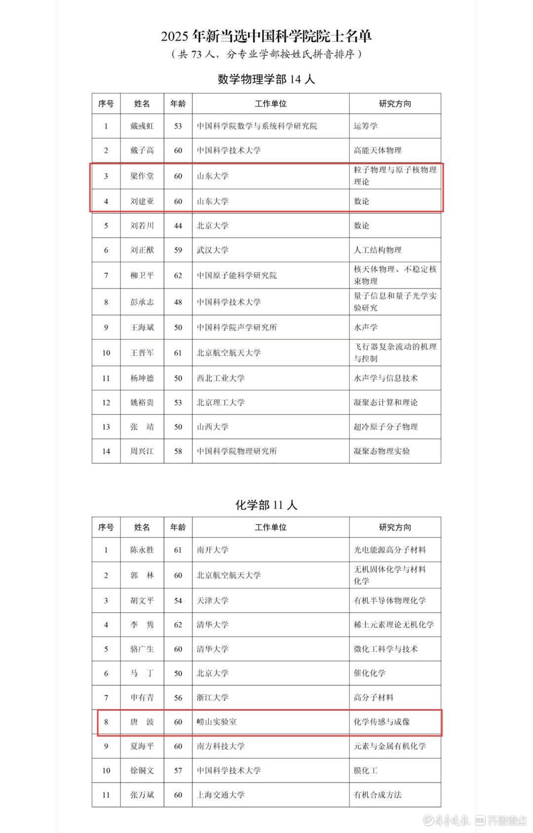 11月21日,中国科学院、中国工程院公布2025年院士增选当选院士名单。其中,中国科学院共选举产生73位院士,有3位来自山东高校和科研机构;中国工程院新增71位院士,有2位来自山东高校和科研机构。此外,中国科学院和中国工程院分别产生27位外籍院士和24位外籍院士,山东共有3人入选。