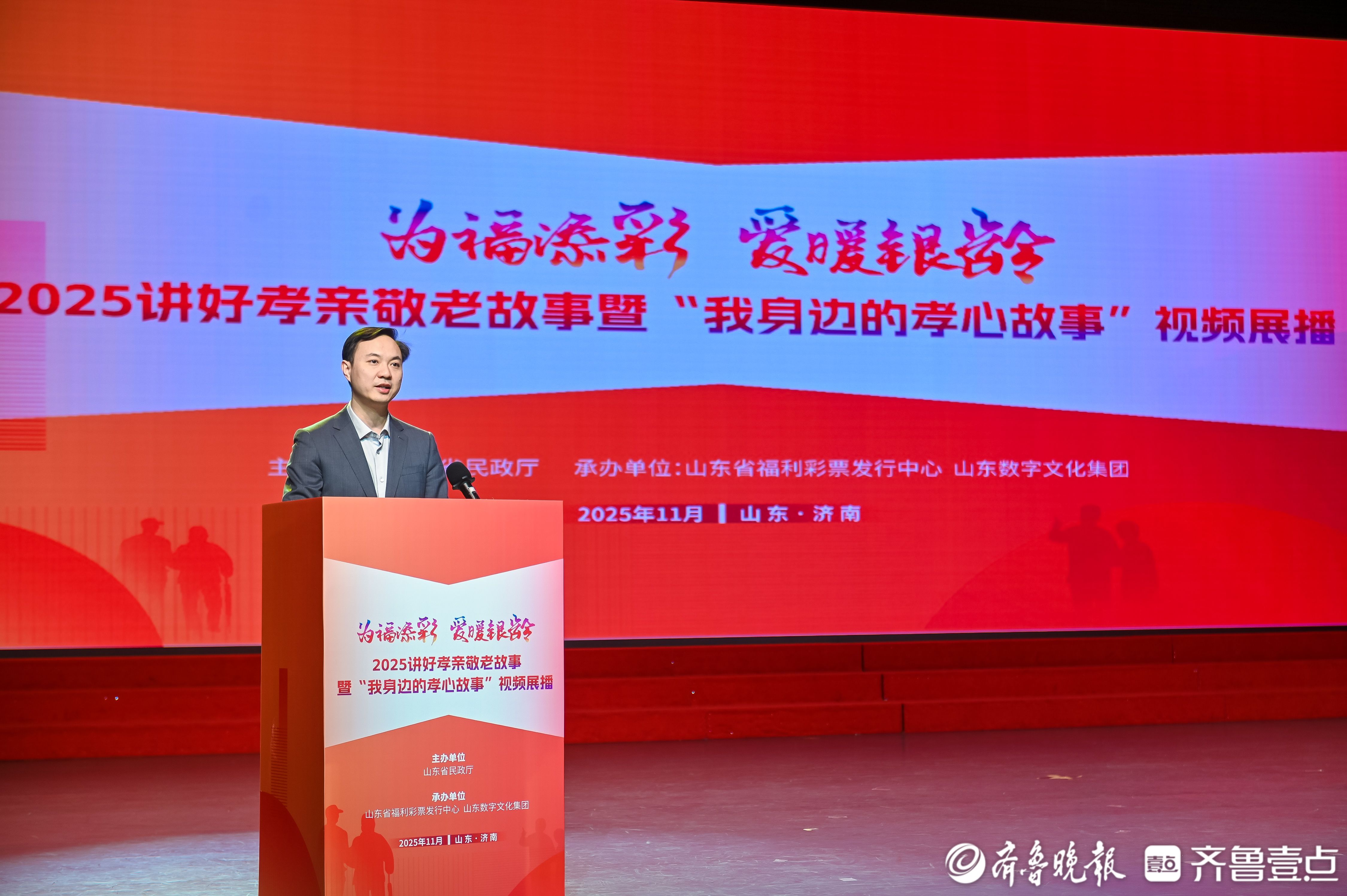 为进一步弘扬尊老、敬老、爱老、助老社会风尚,11月21日下午,由山东省民政厅主办,山东省福利彩票发行中心、山东数字文化集团承办的“为福添彩 爱暖银龄”2025讲好孝亲敬老故事暨“我身边的孝心故事”视频展播活动在山东省老干部活动中心举行。