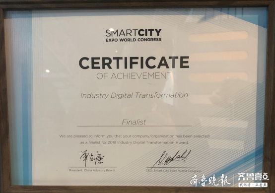 11月19日,在西班牙巴塞罗那举行的第9届全球智慧城市大会(SCEWC,全称Smart City Expo World Congress)上,济南市新型智慧城市建设斩获产业数字化转型奖(Industry Digital Transformation Award),该奖项是当前全球智慧城市建设的最高奖项,被誉为全球智慧城市领域的奥斯卡。
