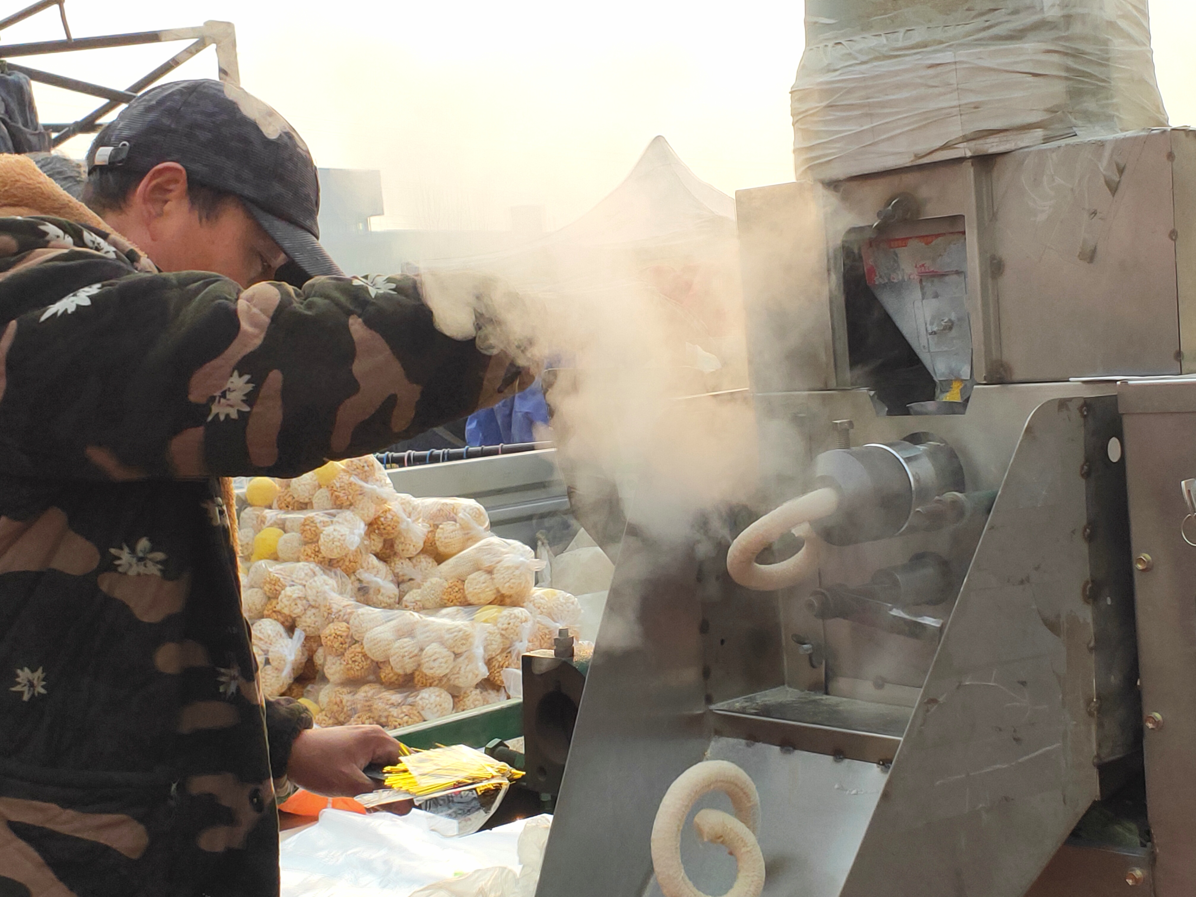 大集上的江米球,冬季最热销 拎机一动 2020-01-04 7.2万 江米球是济南的传统小吃,因香甜可口深受市民喜爱。王先生是江苏徐州人,在济南生产江米球和玉米棍已有两三年时间。他说,这个活每年就是冬季才干,年前年后是最忙的时候。拍摄时,王先生忙得不亦乐乎,一边照料机器,一边卖货,一天能卖百十斤原料的货。一对购货的老两口说,经常买玉米棍,因为没糖,所以很适合老年人。另一位购货老人说,经常来买,主要是孩子喜欢吃。 公益记者 王建国 摄于济南蓝翔集市 责任编辑:王媛