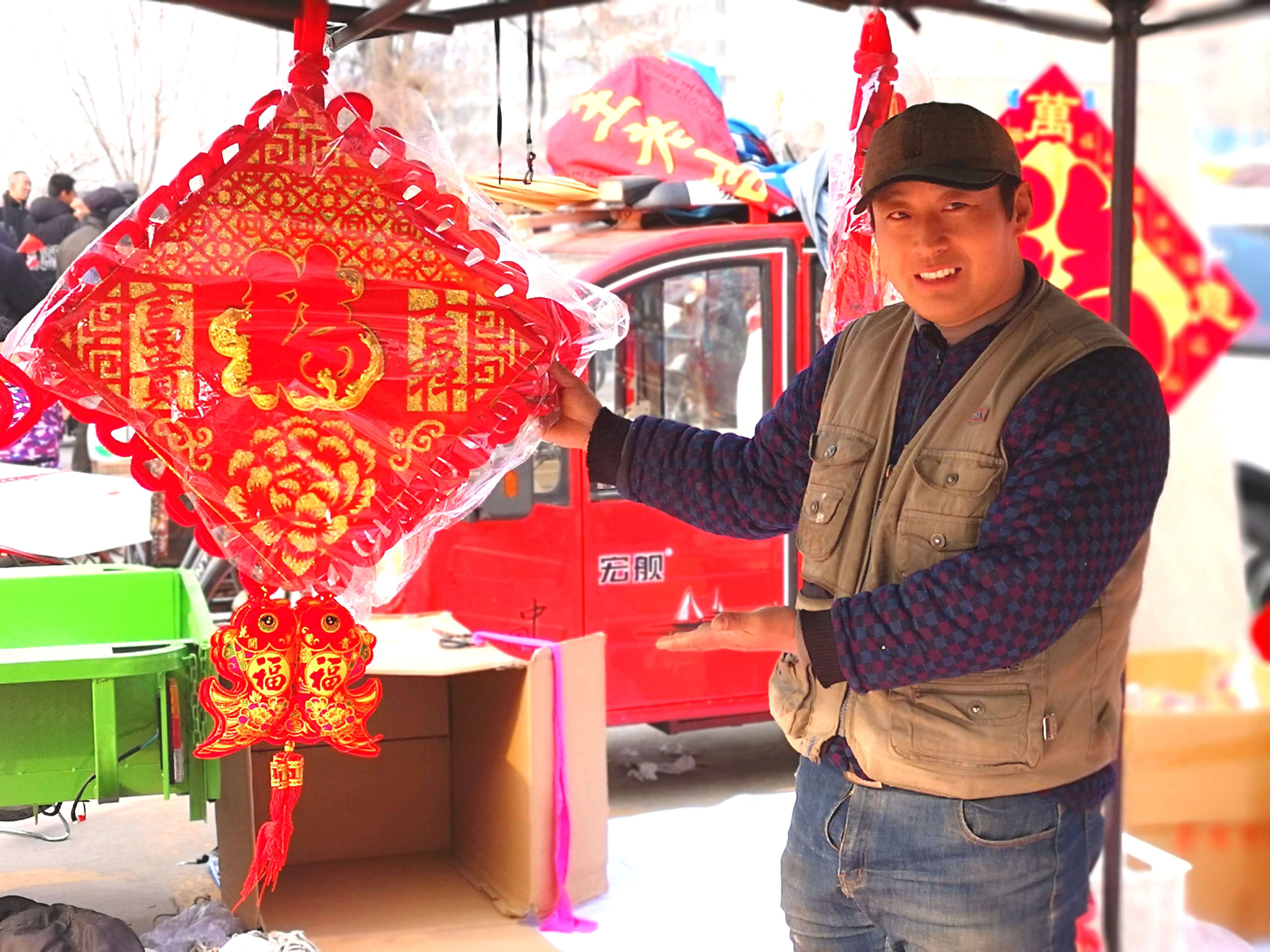 这个叫五福临门那个是十全十美,他在济南卖“福”字20多年 拎机一动 2020-01-05 2.6万 唐国栋先生40多岁,和妻子从济宁来济南经销“福”字年画已有20多年,并已经在济南安家。据观察,唐先生卖福字年画颇有文化味,他拎着一串五个福字的挂件介绍:看一面叫“五福临门”,看两面叫“十全十美”。他说,随着春节临近,福字年画卖的也越来越多,多干几天,等腊月二十八再回老家过年。 公益记者 王建国 摄 责任编辑:王媛