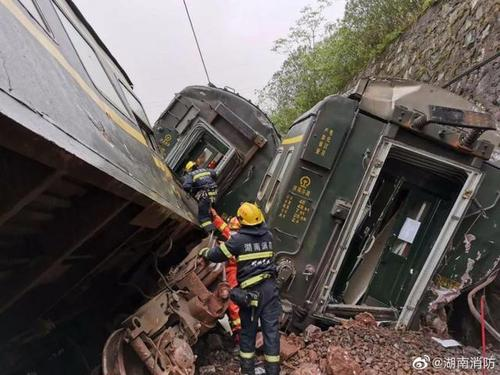 据湖南消防发布的信息,经第一轮搜救,起火车头内无人员被困,侧翻车厢所有被困人员已安全撤离,受伤人员由政府统一安置。经第二轮搜救后,一名乘务员被卡在13-14节挤压车厢中间,2名送往医院的重伤人员无生命危险,情况稳定。