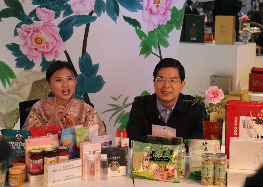 菏泽市市商务局局长耿振华及各县区负责同志现身直播间,向网友推荐牡丹、汉服、山药等37种菏泽特色产品。著名菏泽籍歌手祁隆也现身直播间,推荐菏泽特色产品。