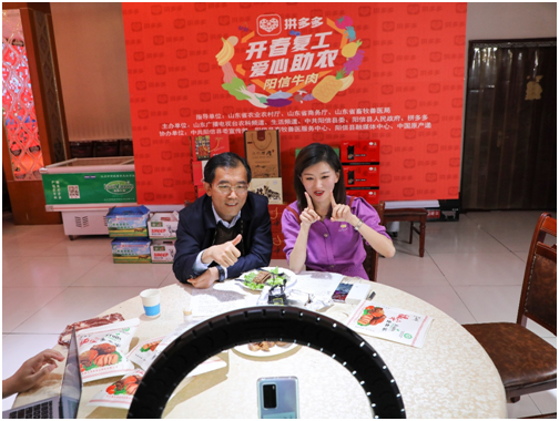 4月16日晚在拼多多直播间,阳信县委书记栾兴刚变身“带货主播”,为当地特色产品“代言”。