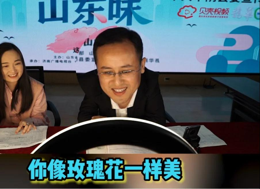 4月10日晚八点,东阿县副县长李尚生来到直播间,为当地各色美食直播带货。