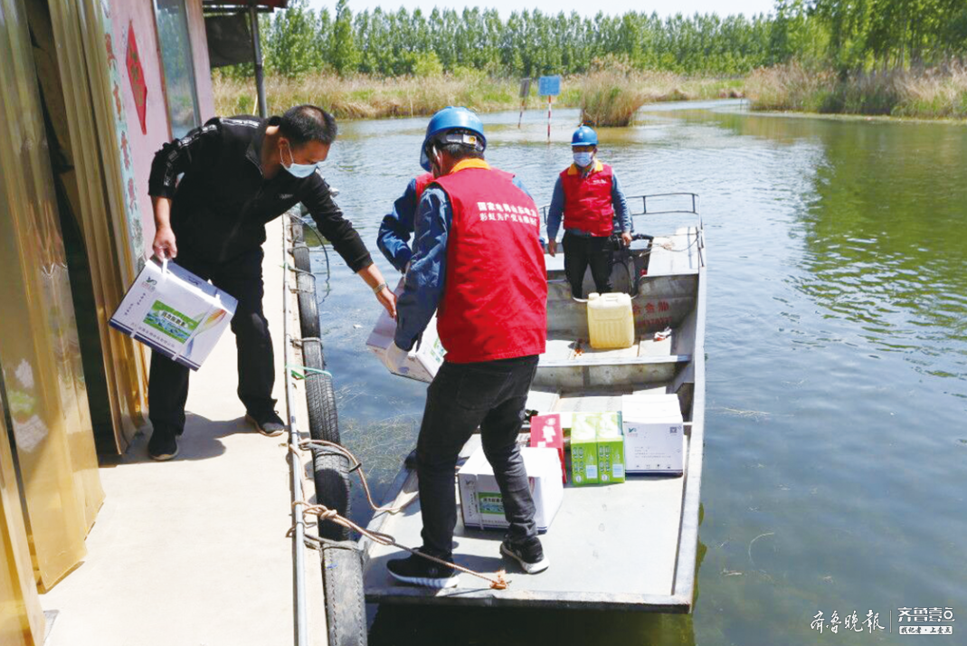 于是在微山湖这片辽阔的水域上又有了流动的彩虹驿站,服务队的每一个队员都是一个流动的驿站,他们在工作之余开始成为了渔民的“中转站”。