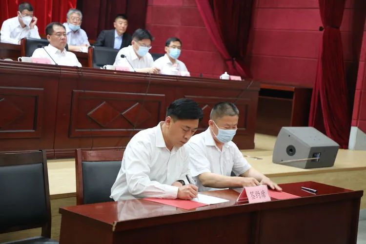 镇党委、政府与旧北村、堤张村签订经济社会发展综合考核评价目标责任书。