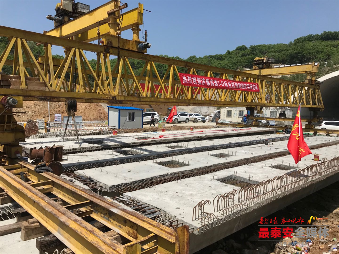 “坚持‘项目扛指标、服务树品牌、落实用真劲’,目前我们专人盯守,24小时全天候盯靠在施工现场,破解矛盾、化解难题、促工促产,积极推进建设任务。经过广大建设者的共同努力,抓沟峪大桥最后一片箱梁架设完成,这标志着济泰高速建设施工进入‘快车道’,这为今年6月30日前,泰安段北段具备通车条件打下了坚实的基础。”于晓鹏说。
