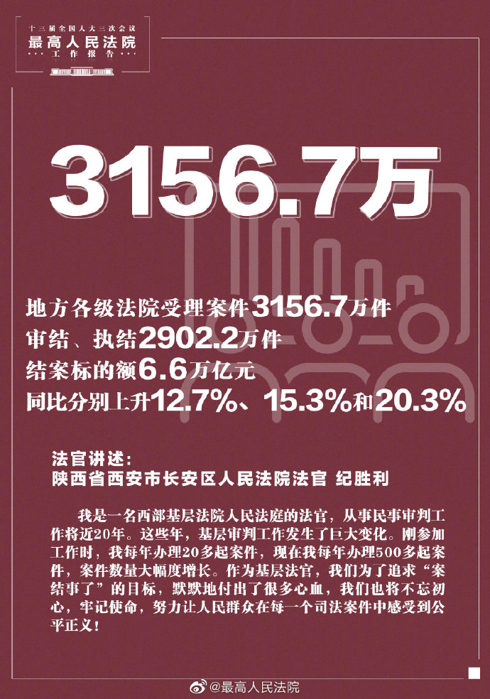 最高人民法院报告回顾2019年工作:审结案件3.4万件