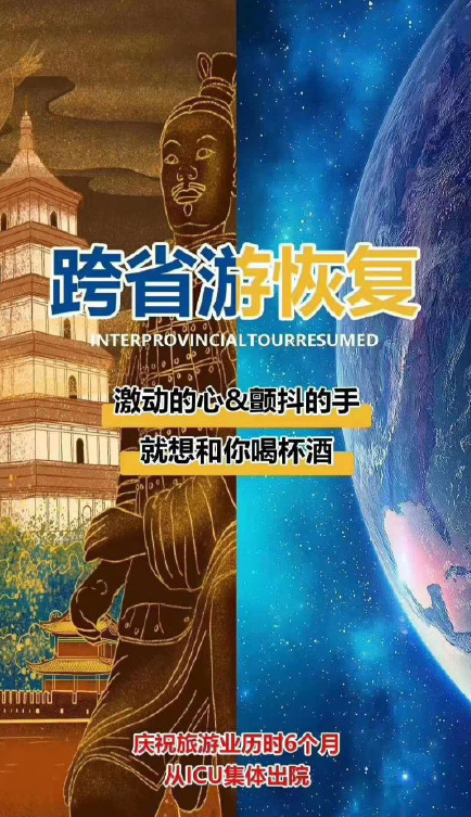 “文旅部办公厅印发《关于推进旅游企业扩大复工复业有关事项的通知》,指出恢复跨省(区、市)团队旅游。各省(区、市)文化和旅游行政部门在做好疫情防控工作的前提下,经当地省(区、市)党委、政府同意后,可恢复旅行社及在线旅游企业经营跨省(区、市)团队旅游及“机票+酒店”业务。中、高风险地区不得开展团队旅游及“机票+酒店”业务。出入境旅游业务暂不恢复。”