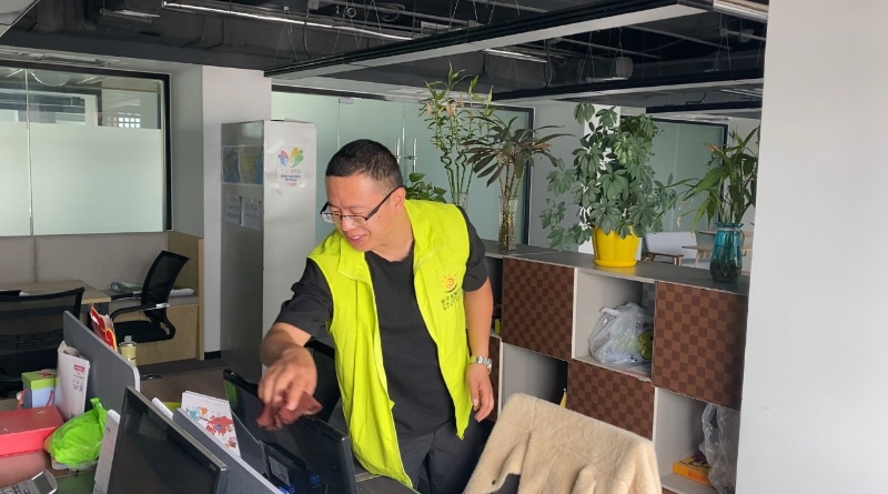 北京金翔国际旅行社集团有限公司济南分公司(笑夕阳)的总经理魏晨正在办公室打扫卫生
