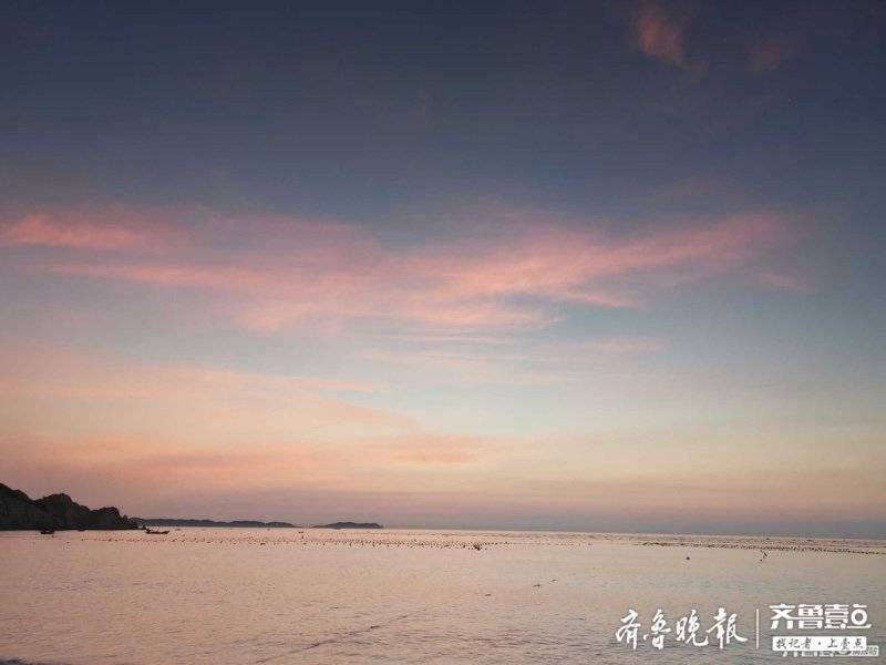 远望,此时的海平面是平静的,种植的海带也沉默地看着我们,一道一道的云,层次分明地陆续呈现。