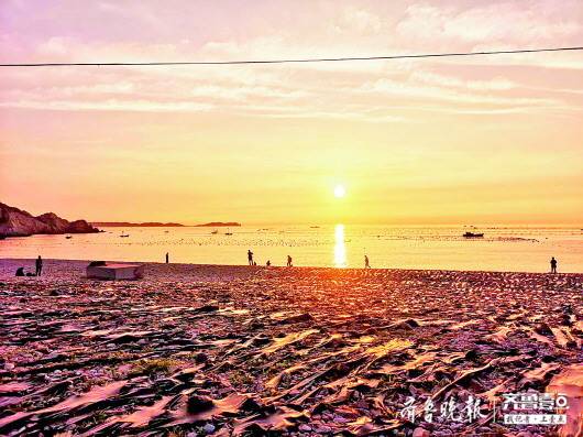 钦岛上观日出美景。作为海带之乡,海滩上的海带在朝霞里像海浪一样。壹粉钟福生摄