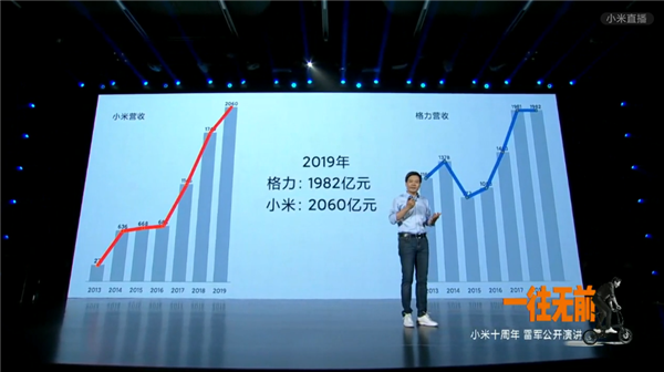 不过戏剧的是,就在赌约到期的第二年,小米2019年营收达到了2060亿元,超过了格力的1982亿元。