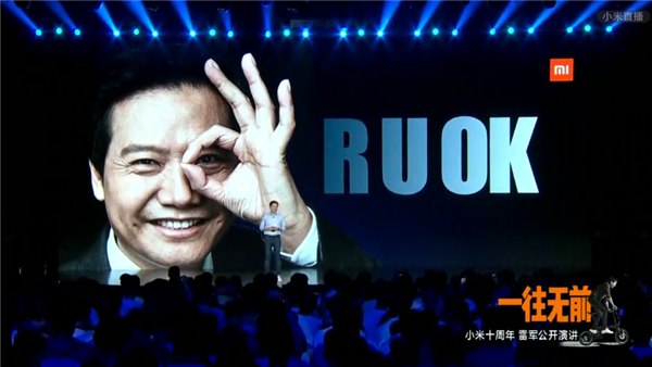 在小米十周年雷军演讲现场,Are you OK经典重现,魔性依然,画面太欢乐。