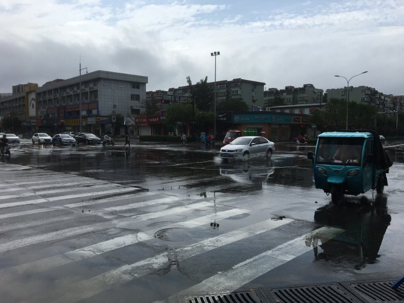山大路花园路积水基本退去,交通恢复正常通行