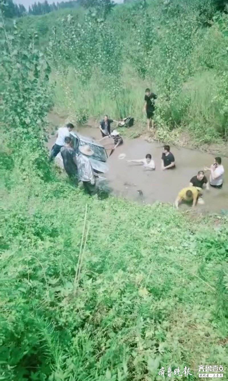 看到还有一辆车翻在水里。”