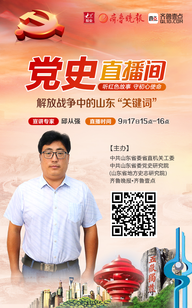 听红色故事,守初心使命。这里是齐鲁晚报·齐鲁壹点《党史直播间》。本节目由中共山东省委省直机关工委、中共山东省委党史研究院(山东省地方史志研究院)与齐鲁晚报·齐鲁壹点联合主办,9月17日15:00是第3期。欢迎关注。