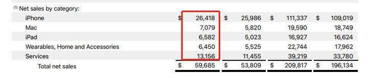 最新一个季度里,在苹果智能手表和 AirPods 耳机获得成功的推动下,苹果可穿戴设备和配件部门高歌猛进,营收增长 144%,达到 64.5 亿美元;平板电脑部门的营收增长 45%,达到 65.8 亿美元;而服务业务收入增长 162%,达到 132 亿美元。