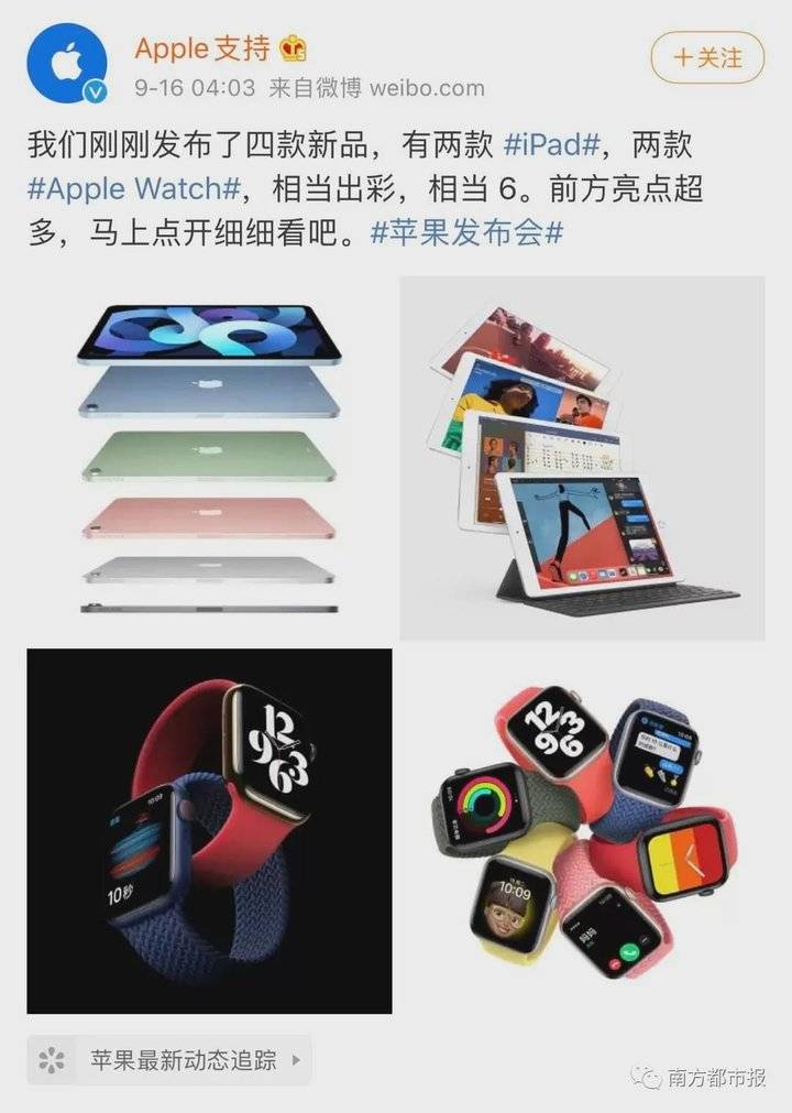 此次,苹果发布了四款新品,包括第八代iPad、新iPad Air、Apple Watch Series 6 和Apple Watch SE。