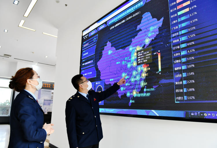税收数据不仅是工作的好助手,还能筛选出助力企业复产复工的有效信息。图为税务人员正从税收大数据查找助力企业上下游链条发展的经营信息。
