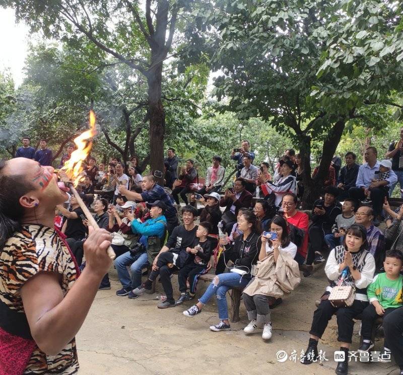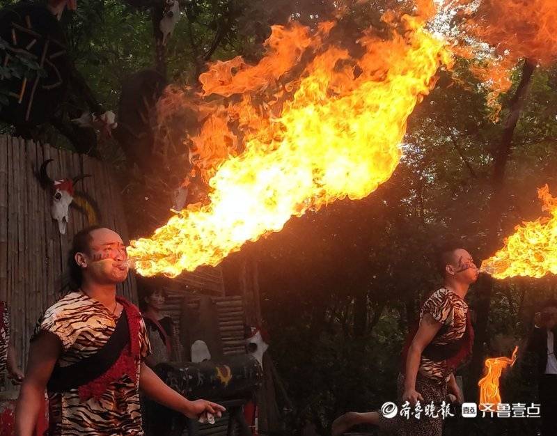 在潍坊安丘青云山景区的“野人谷”表演活动中,壹粉大咖见到令人叫绝的喷火表演。表演者手执火把,猛然一张嘴,从嘴中喷出数米高的橙色火焰,围观的人甚至能在瞬间感受到脸上的炙热,加上各种杂耍动作,场面十分震撼。