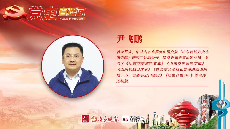 听红色故事,守初心使命。这里是齐鲁晚报·齐鲁壹点《党史直播间》。本节目由中共山东省委省直机关工委、中共山东省委党史研究院(山东省地方史志研究院)与齐鲁晚报·齐鲁壹点联合主办。欢迎本期宣讲嘉宾:尹飞鹏老师。