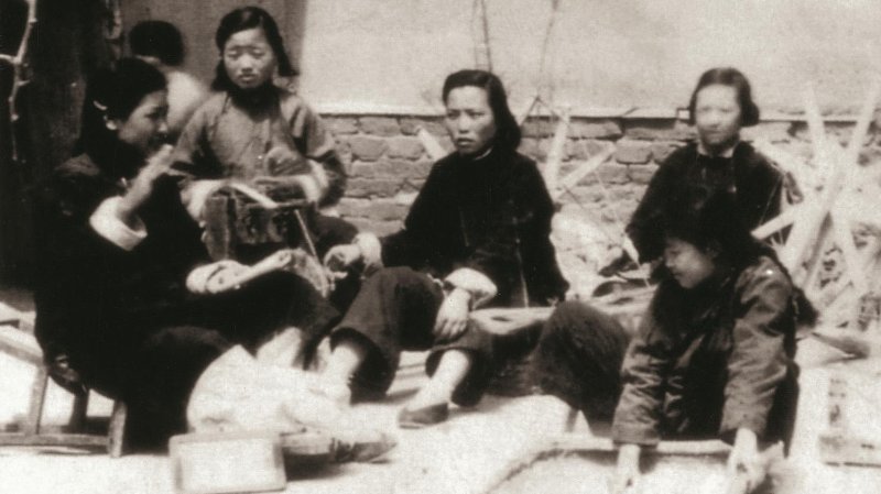 图/广大农民开展了爱国丰产运动,图为1951年,菏泽妇女组织生产、支援抗美援朝