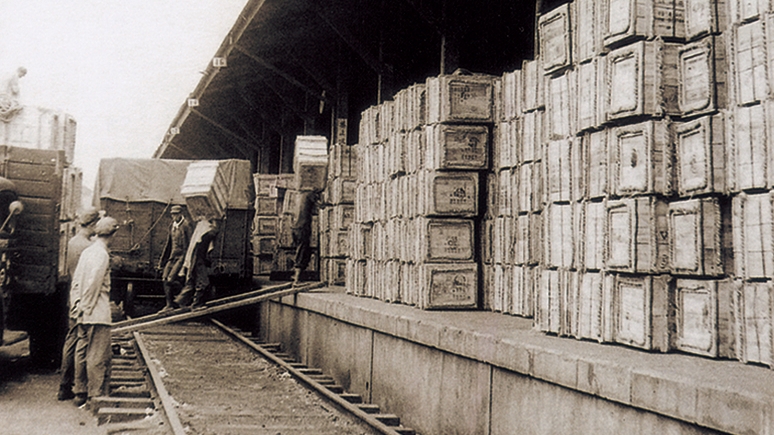 图/一箱箱慰问品搬运到火车站,即将装上列车运往朝鲜前线