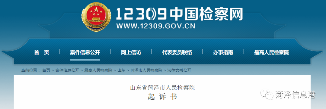 2020年10月22日,菏泽市人民检察院发布一则起诉书,