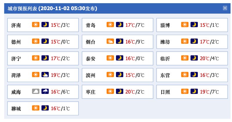 夜间最低气温:鲁西北和鲁中山区1℃左右,有霜冻;半岛沿海地区7℃左右;其他地区2℃左右,有霜冻。