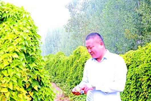 看到山药长势喜人,庞冲笑了。 杨文斐 摄