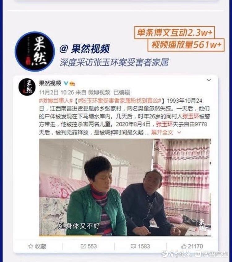 11月1日,齐鲁晚报•齐鲁壹点推出“张玉环案背后的受害者:两个被杀孩子的母亲”深度调查报道,旗下果然视频同时推出深度调查视频“果然视频|张玉环案两个遇害孩子的家庭生活很难,盼找到真凶”,两个受害孩子的家人也是首次公开发声,他们流着泪表达了盼望抓到真凶的诉求。
