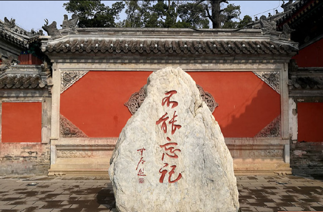 正觉寺山门一侧有欧阳中石先生题写的“不能忘记”,提醒我们勿忘国耻。