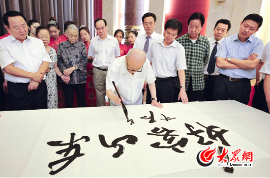 正是这份赤子之情,令欧阳中石对前来求字的山东老乡更是是来者不拒,因此,中石先生在山东留下了很多墨宝,经他题字的建筑不计其数,他对山东的感情从这些题字里就可见一斑。