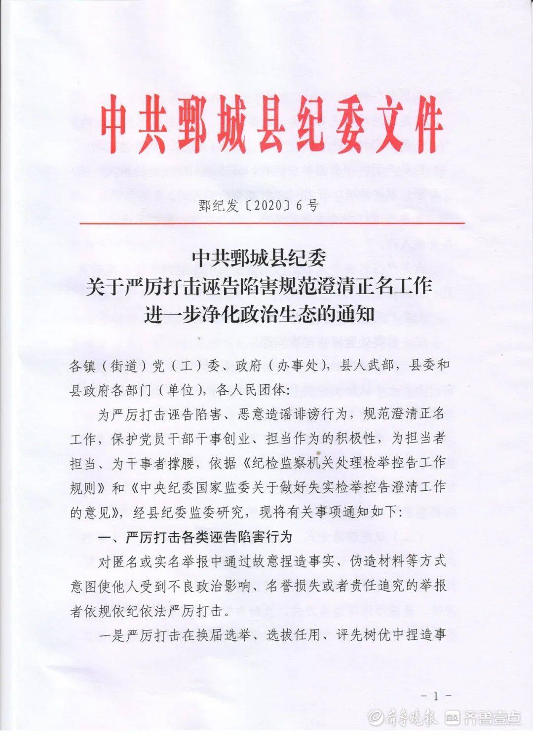 为干事者撑腰!鄄城发文:严查诬告陷害,为受到诬告陷害干部正名