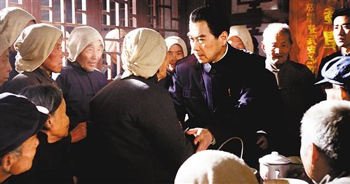 导演和演员把握住周总理坚定、沉稳、睿智、谦和的气质与博大、悲悯的胸怀,准确挖掘其精神特质。一场冲毁白薯秧的暴雨后,周总理一人坐在房门口,那沉思的神态,深邃的目光,把总理面对人民疾苦时的沉重、焦虑又愧疚的内心展露得淋漓尽致。影片重复出现深夜总理在伏案研究材料、书写报告的静态画面——此刻无声胜有声——凸现出他忧国忧民,不辞辛劳,肩担历史重负的精神力量。