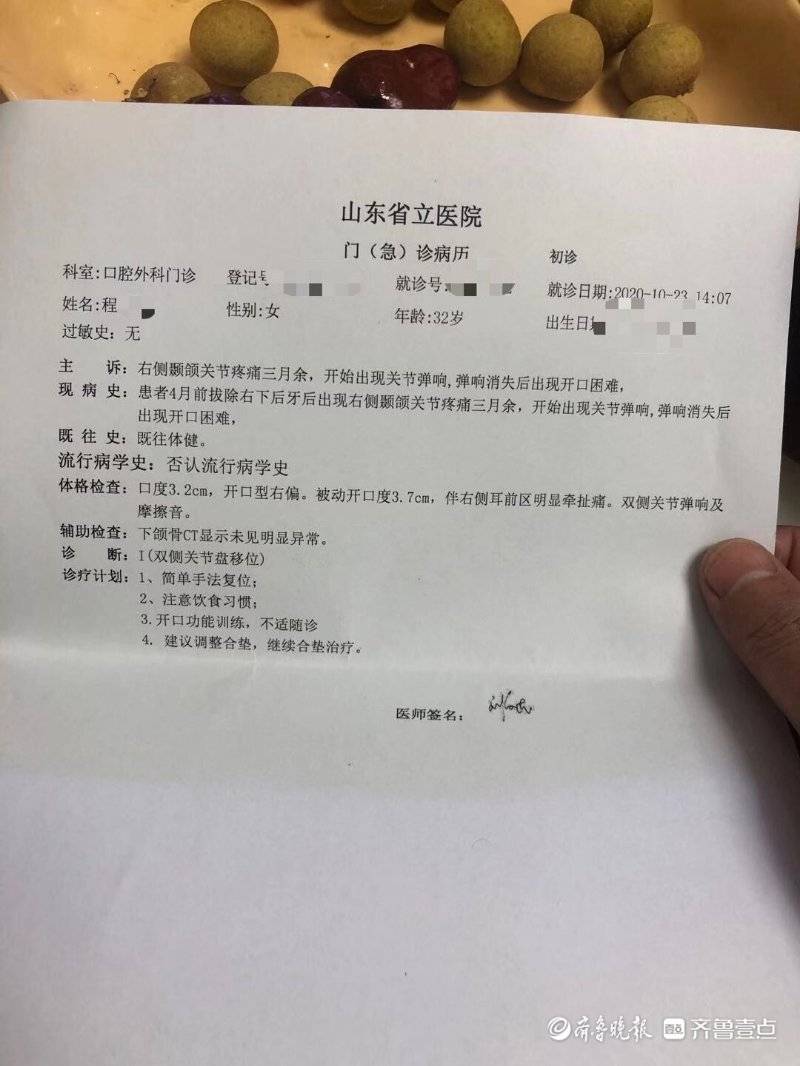 追事丨枣庄女子拔牙数月一张嘴就咔咔响,医院无任何说法