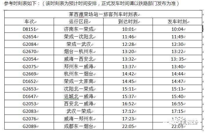 潍莱高铁将于11月26日开通,莱西站最新列车时刻表来了