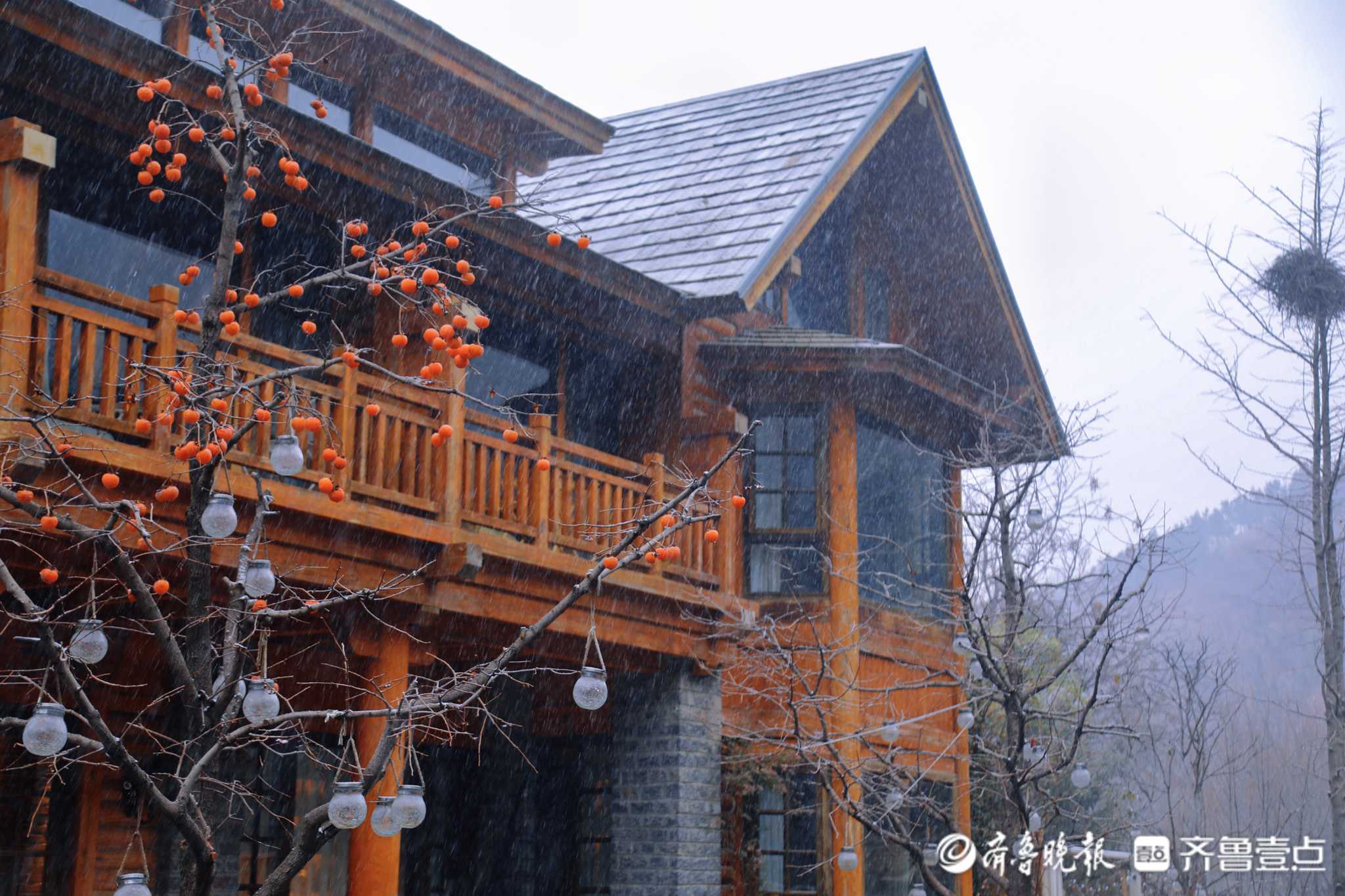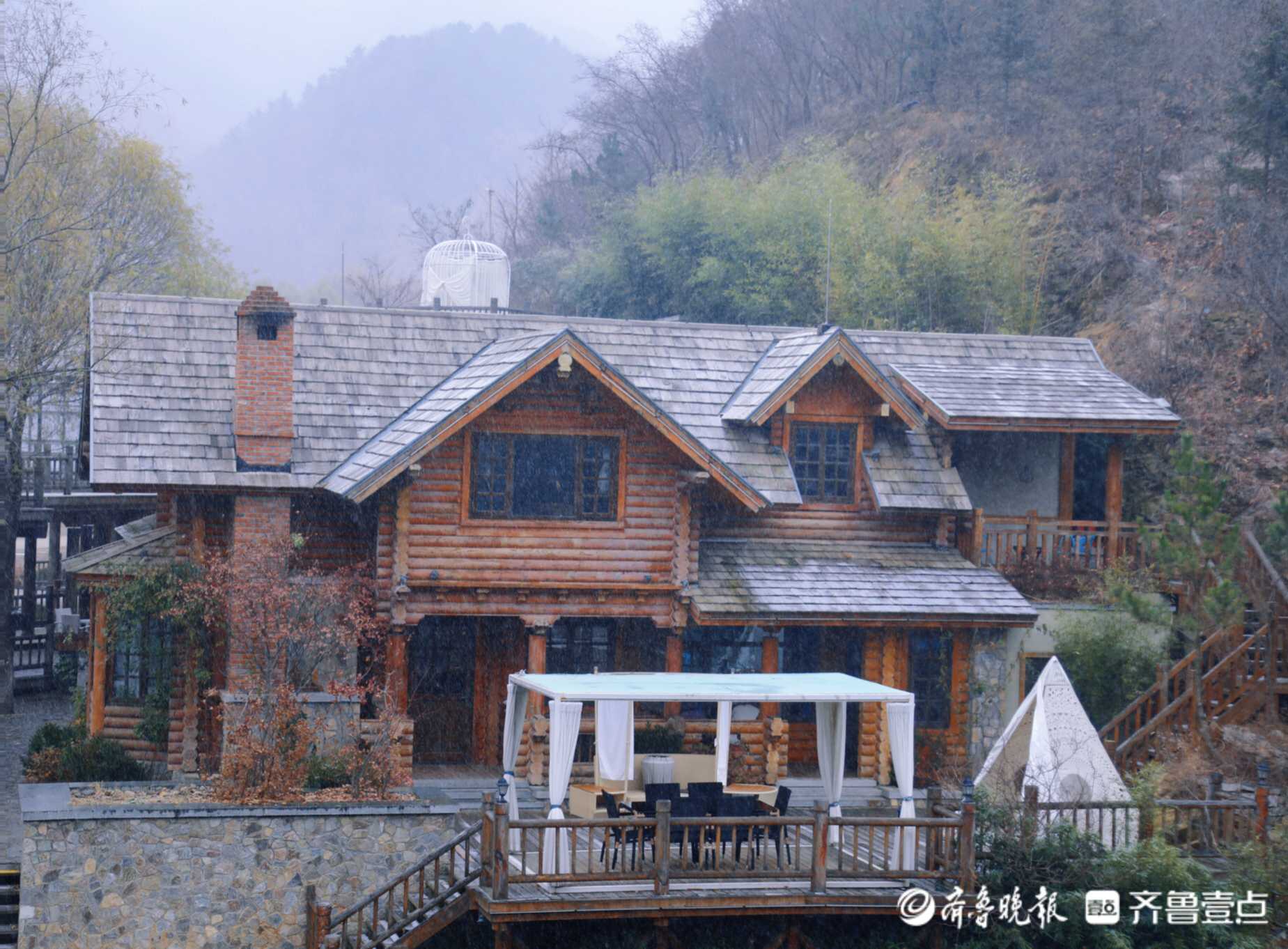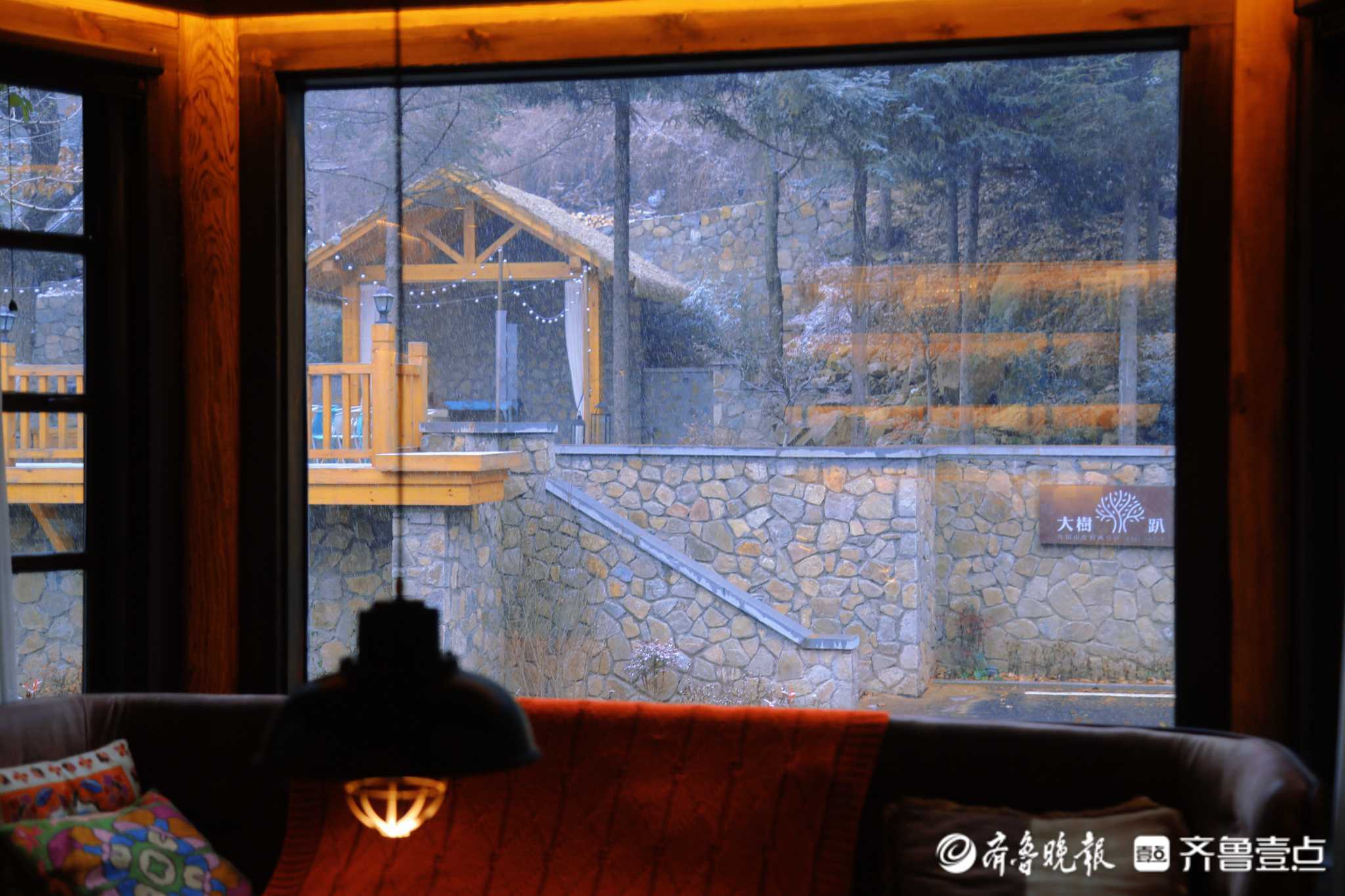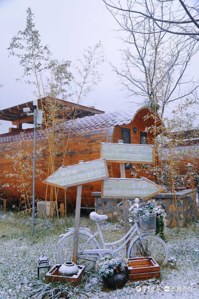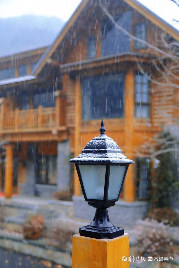 “12月1日下午两点,雪花开始在这海拔856.6米的高山飘落,被雪覆盖后的九如山格外好看,引得不少游客在木屋、瀑布、栈道赏雪拍照。”壹粉说。